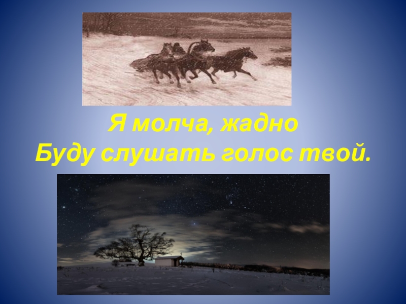 Слайд 12Я молча, жадно  Буду слушать голос твой.