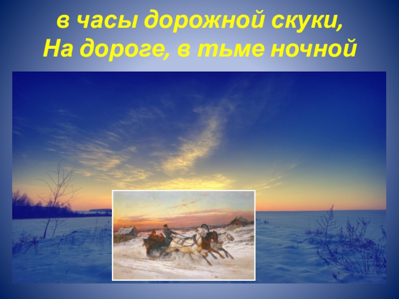 Слайд 9в часы дорожной скуки,  На дороге, в тьме ночной