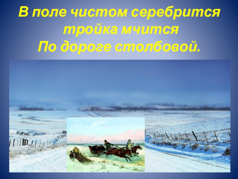 Слайд 7В поле чистом серебрится тройка мчится  По дороге столбовой.