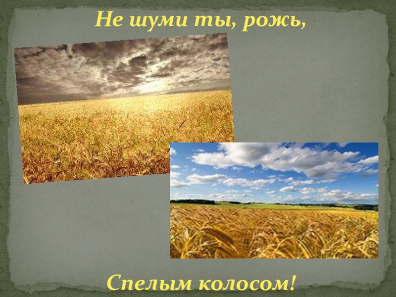 Слайд 4Не шуми ты, рожь,  Спелым колосом!