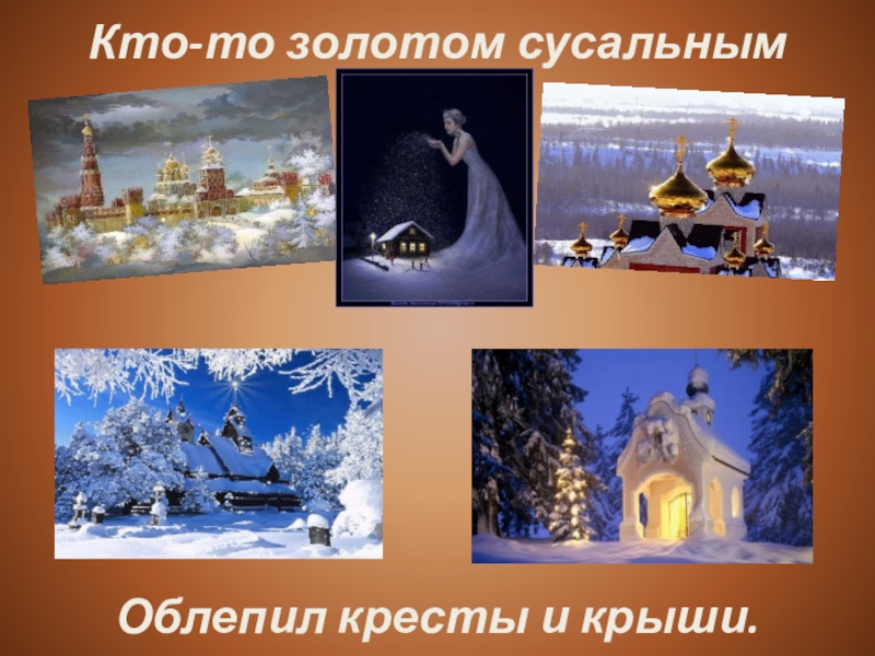 Слайд 6  Кто-то золотом сусальным Облепил кресты и крыши.