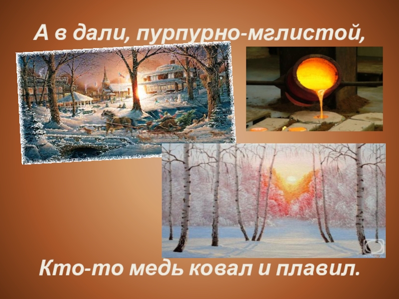 Слайд 5 А в дали, пурпурно-мглистой, Кто-то медь ковал и плавил.