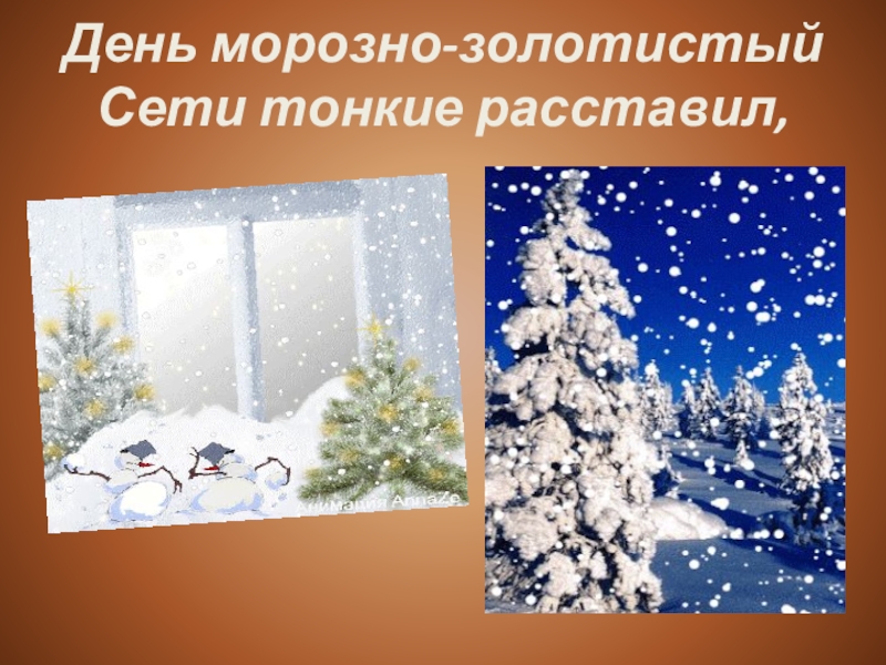 Слайд 4День морозно-золотистый Сети тонкие расставил,