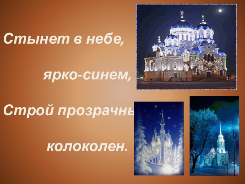 Слайд 10 Стынет в небе, ярко-синем, Строй прозрачных
