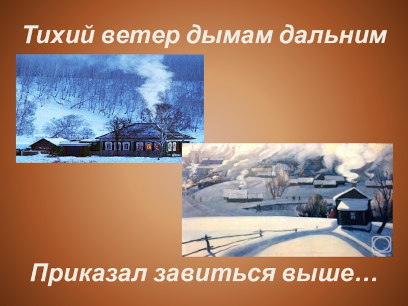 Слайд 7Тихий ветер дымам дальним Приказал завиться выше…