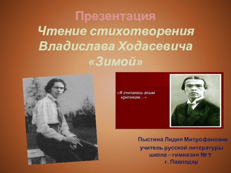 Презентация Чтение стихотворения  Владислава Ходасевича «Зимой»