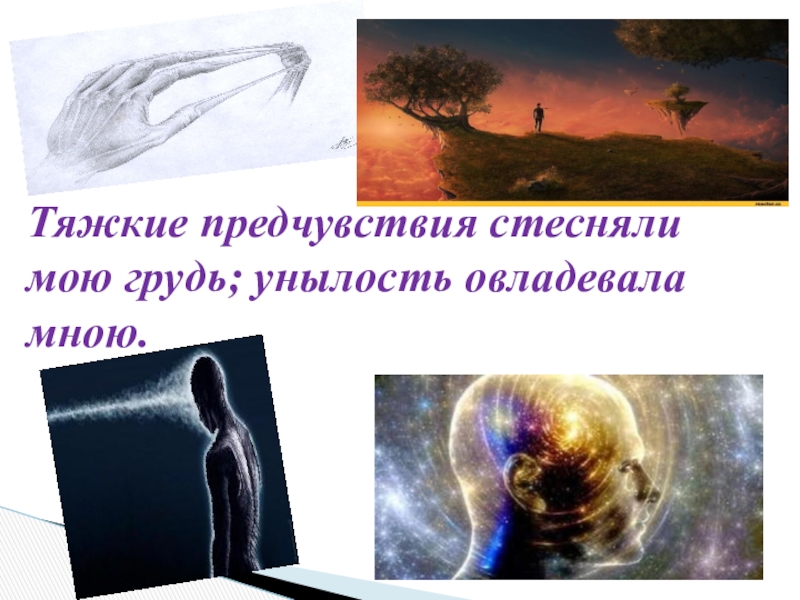Слайд 6Тяжкие предчувствия стесняли мою грудь; унылость овладевала мною.