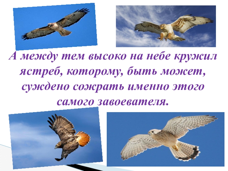 Слайд 11А между тем высоко на небе кружил ястреб, которому, быть может,