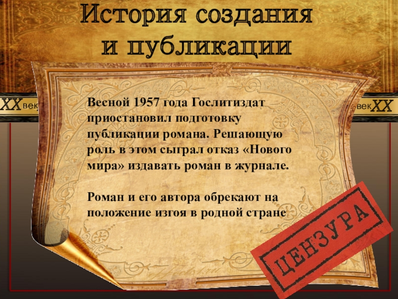 подготовку публикации романа. Решающую роль в этом сыграл отказ «Нового мира» издавать роман в журнале.