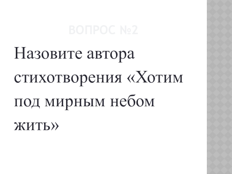 Вопрос №2Назовите автора стихотворения «Хотим под мирным небом жить»