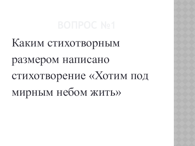 Вопрос №1Каким стихотворным размером написано стихотворение «Хотим под мирным небом жить»