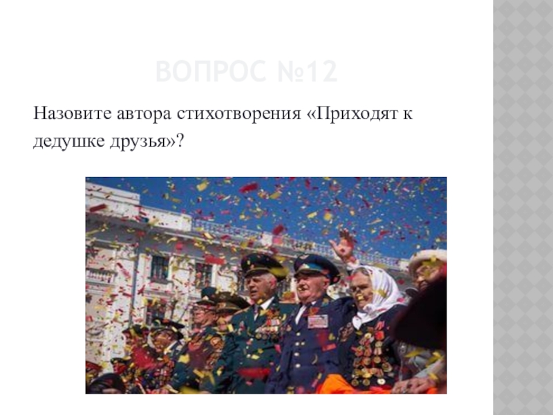 Вопрос №12Назовите автора стихотворения «Приходят к дедушке друзья»?