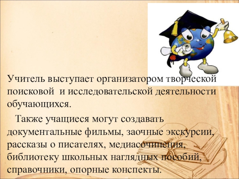 Это сайт презентаций, где можно хранить и обмениваться своими презентациями, докладами, проектами, шаблонами в формате PowerPoint с другими пользователями. Мы помогаем школьникам, студентам, учителям, преподавателям хранить и обмениваться учебными материалами.