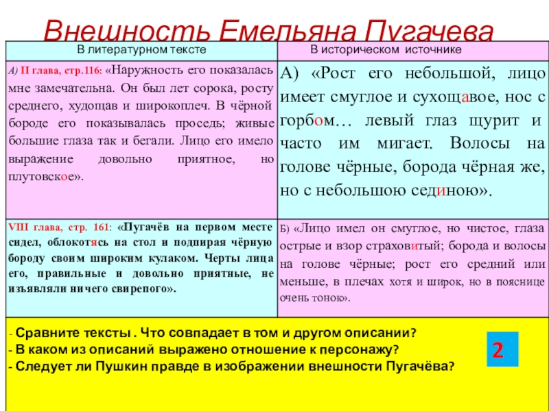 Оборудование: портреты А.С. Пушкина, Екатерины II, Емельяна Пугачева, карточки,компьютер, телевизор, презентация к уроку.