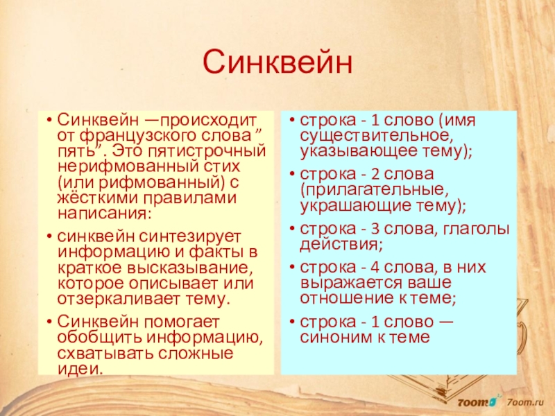 Приёмы: фронтальный опрос – «Мозговой штурм», эвристическая беседа, проблемный вопрос,«ассоциативный куст», работа в группах, самостоятельная работа, работа с текстом, синквейн
