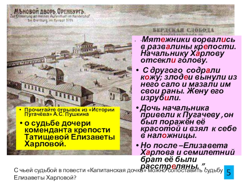 Опережающее задание: учащиеся выполняют поисковую работу по истории написания повести, о социальной обстановке эпохи Екатерины ІІ и причинах народного бунта, о Емельяне Пугачеве