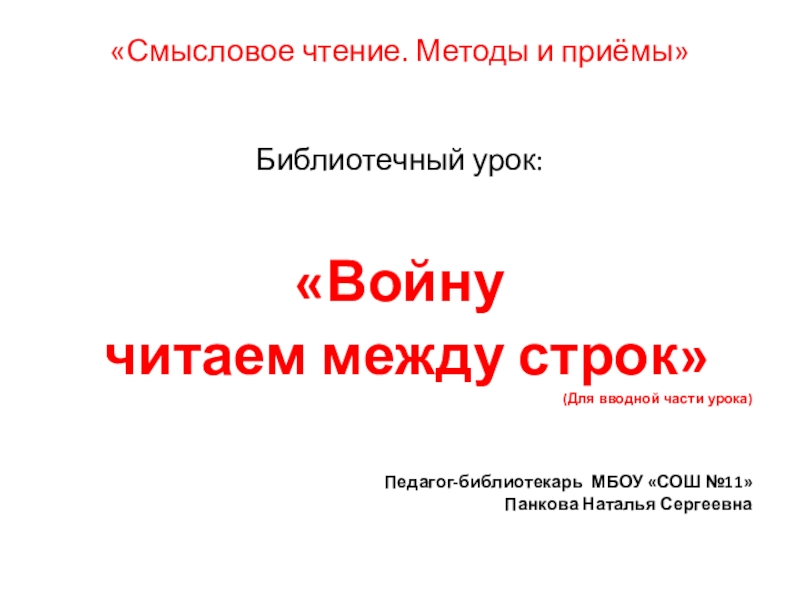 Педагог-библиотекарь МБОУ «СОШ №11»