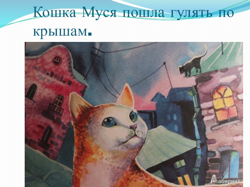 Слайд 2Кошка Муся пошла гулять по крышам.