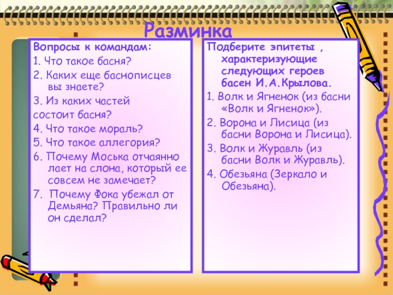 Подберите эпитеты , характеризующие следующих героев басен И.А.Крылова.