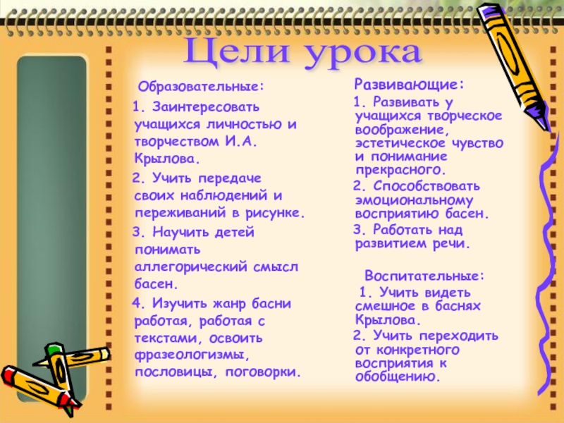 1. Развивать у учащихся творческое воображение, эстетическое чувство и понимание прекрасного.