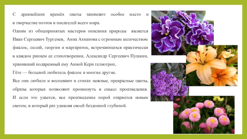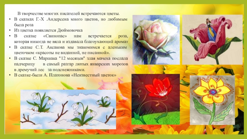Слайд 5В творчестве многих писателей встречаются цветы.
