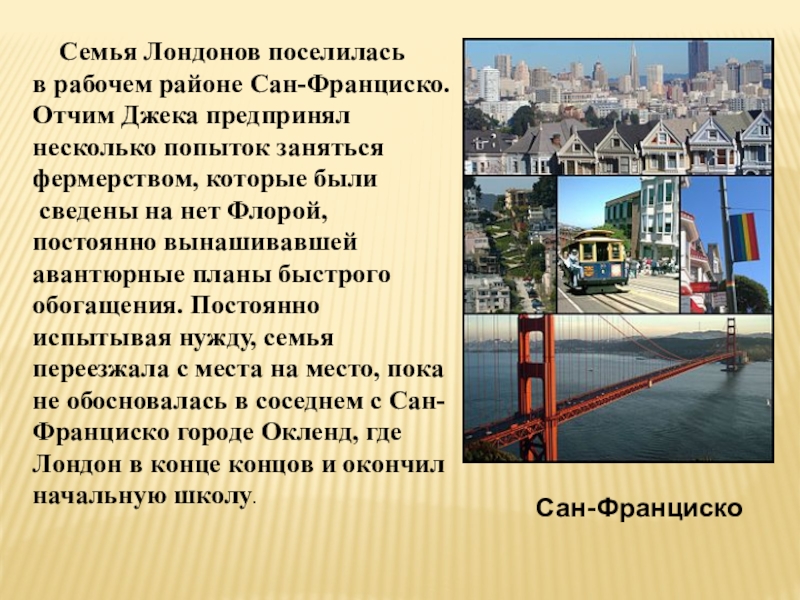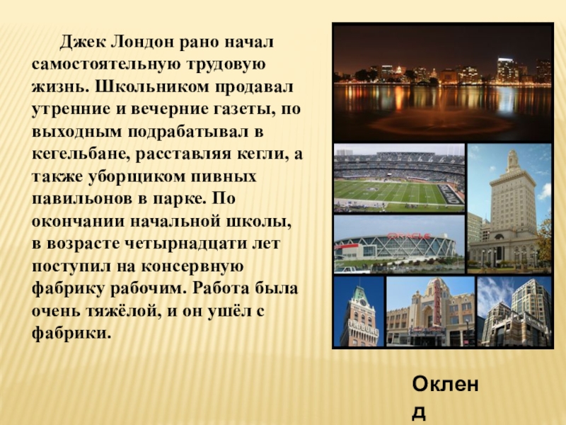Слайд 7 Джек Лондон рано начал самостоятельную трудовую жизнь. Школьником