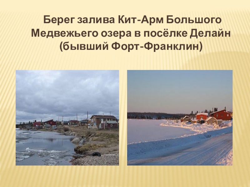 Слайд 27 Берег залива Кит-Арм Большого Медвежьего озера в посёлке