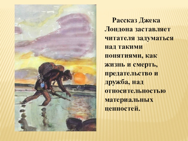 Слайд 28 Рассказ Джека Лондона заставляет читателя задуматься над такими понятиями,