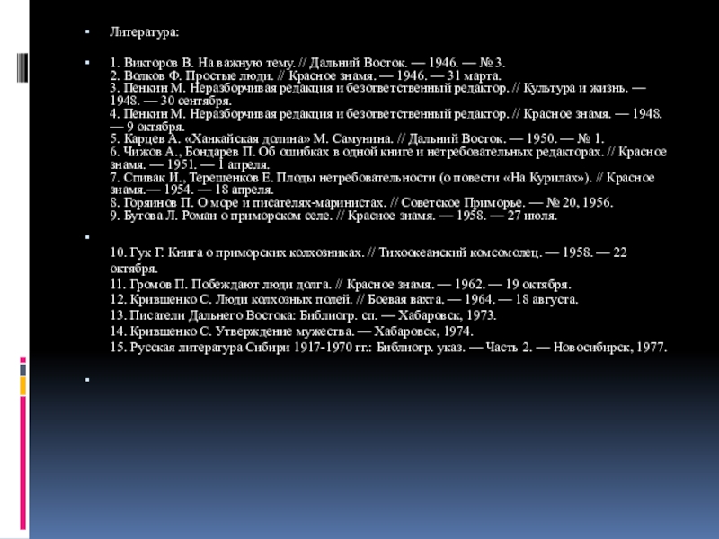 13. Писатели Дальнего Востока: Библиогр. сп. — Хабаровск, 1973.