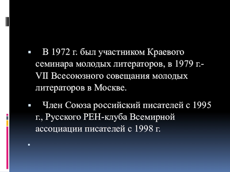 Слайд 5 В 1972 г. был участником Краевого семинара молодых литераторов, в 1979