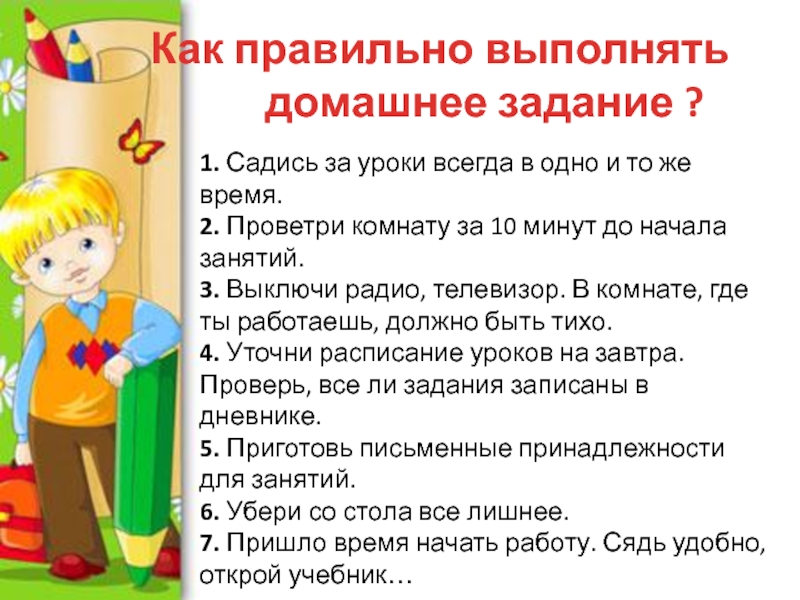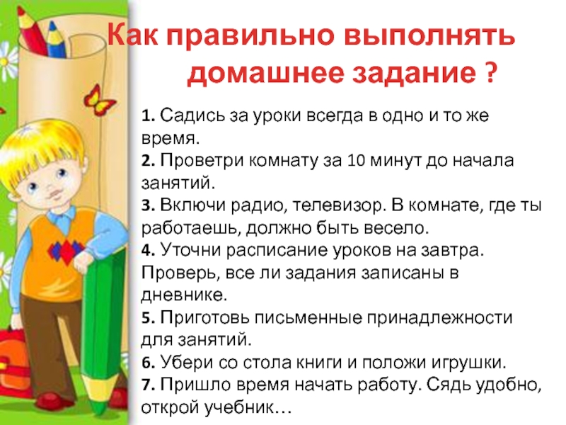 7. Пришло время начать работу. Сядь удобно, открой учебник…