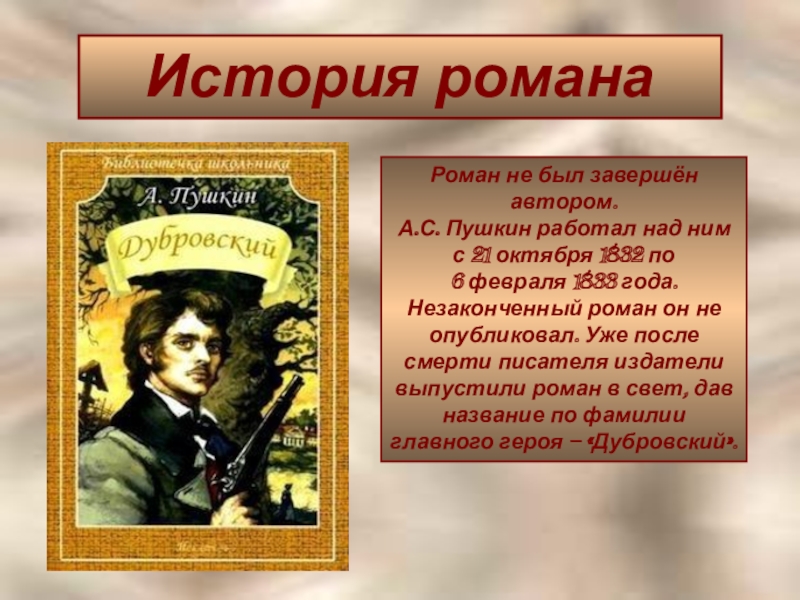 Действие романа происходит в 1820-ые годы, т.е. в годы молодости Пушкина. Автор пишет о том, что хорошо знает, что его волнует.