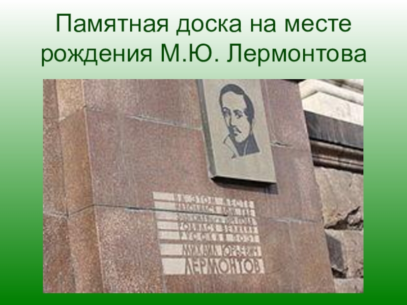 Слайд 11Памятная доска на месте рождения М.Ю. Лермонтова