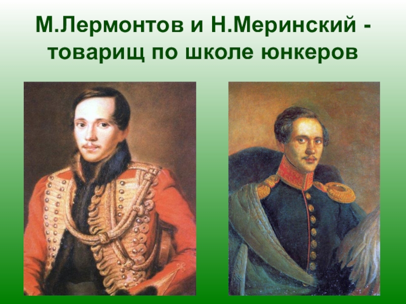 Слайд 13М.Лермонтов и Н.Меринский - товарищ по школе юнкеров