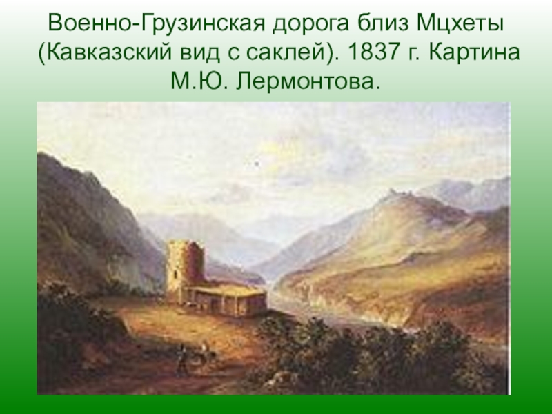 Военно-Грузинская дорога близ Мцхеты (Кавказский вид с саклей). 1837 г. Картина М.Ю. Лермонтова.