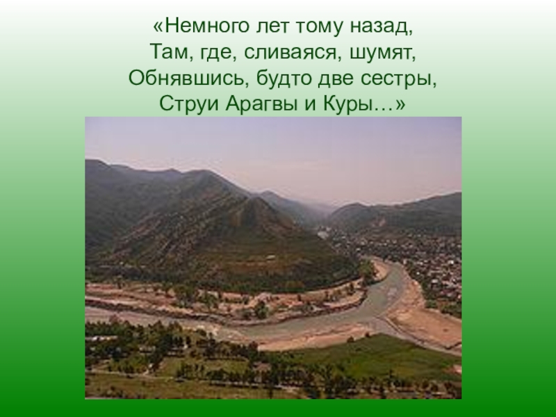 «Немного лет тому назад,  Там, где, сливаяся, шумят, Обнявшись, будто две сестры, Струи Арагвы и Куры…»