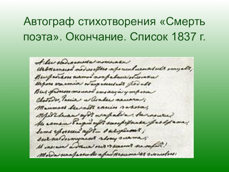 Слайд 15 Автограф стихотворения «Смерть поэта». Окончание. Список 1837 г.