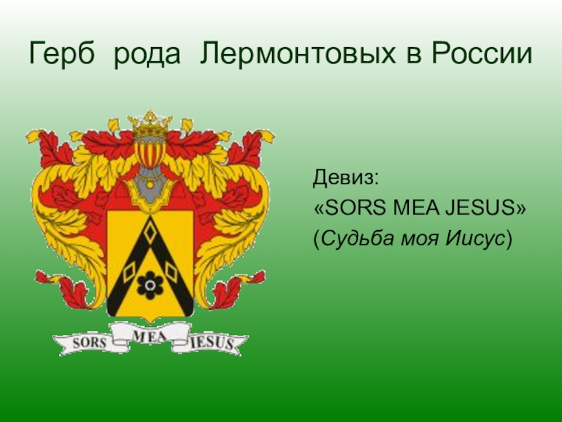 Герб рода Лермонтовых в РоссииДевиз: «SORS MEA JESUS» (Судьба моя Иисус)