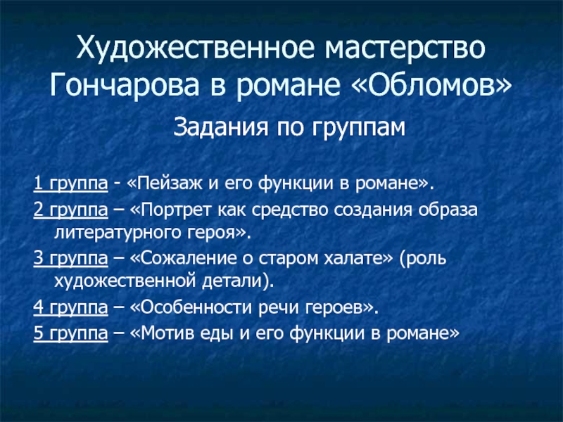 первоначальное название ( с «Обломовщины» на «Обломов»), подчёркивая тем самым, что в центре внимания находится человек, а не социальные проблемы.