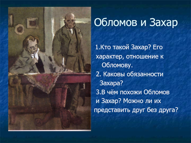 Кто такой Захар? В чём похожи Обломов и Захар?(7-8, 10 главы).