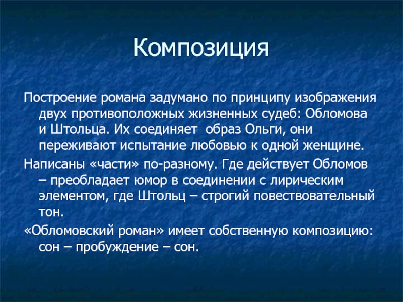 «Обломовский роман» имеет собственную композицию: сон – пробуждение – сон.