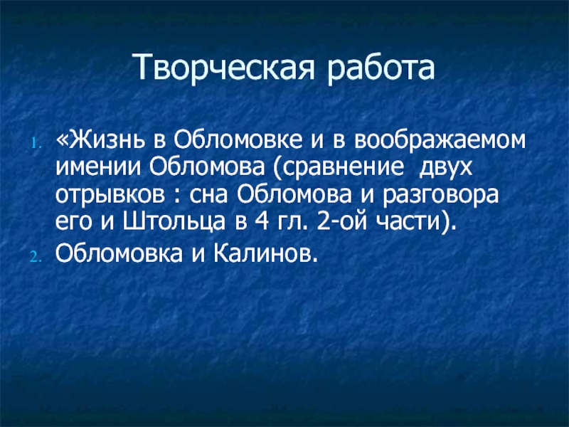 отрывков : сна Обломова и разговора его и Штольца в 4 гл. 2-ой части).