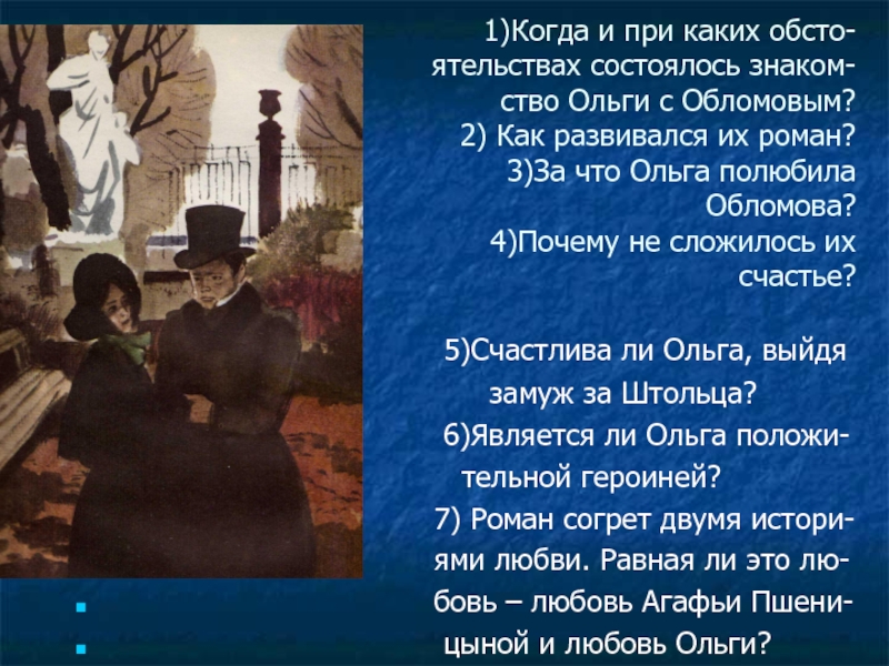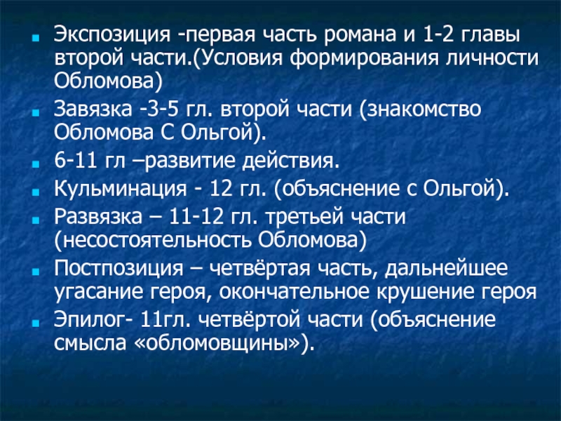 Завязка -3-5 гл. второй части (знакомство Обломова С Ольгой).