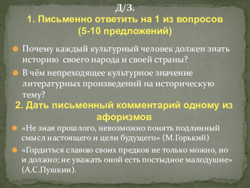 Слайд 13Почему каждый культурный человек должен знать историю своего народа и своей