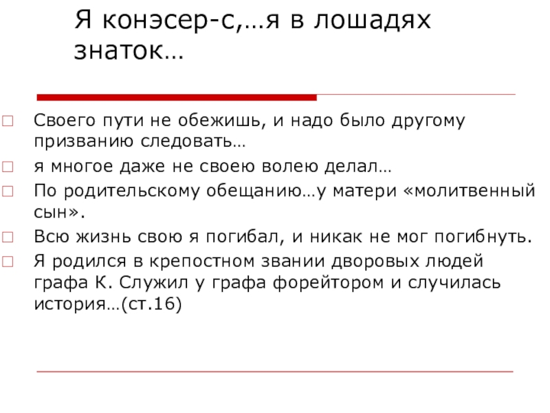 Слайд 13Я конэсер-с,…я в лошадях знаток…