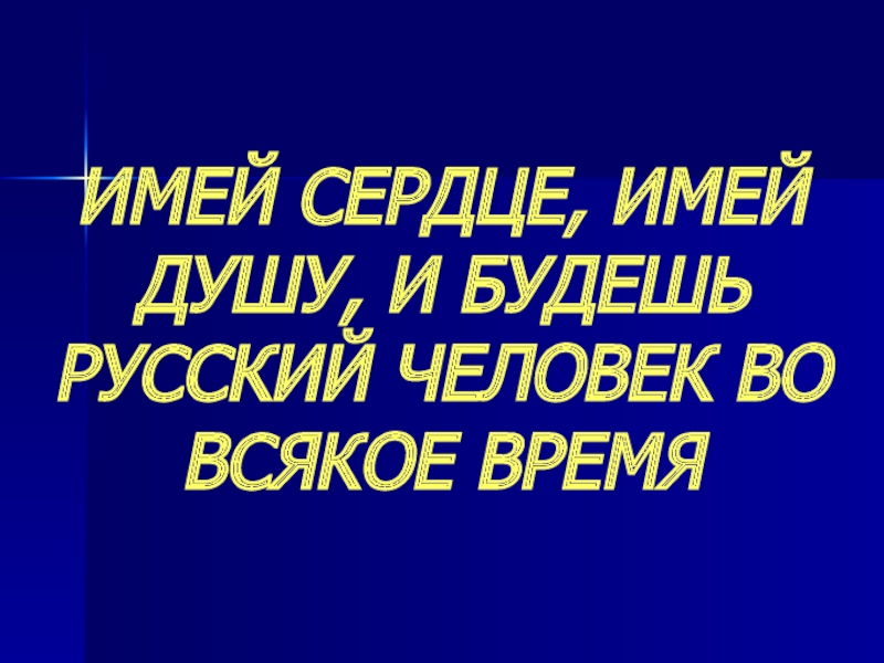 Слайд 3ИМЕЙ СЕРДЦЕ, ИМЕЙ ДУШУ, И БУДЕШЬ РУССКИЙ ЧЕЛОВЕК ВО ВСЯКОЕ ВРЕМЯ