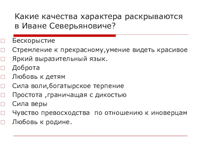 Слайд 18Какие качества характера раскрываются в Иване Северьяновиче?