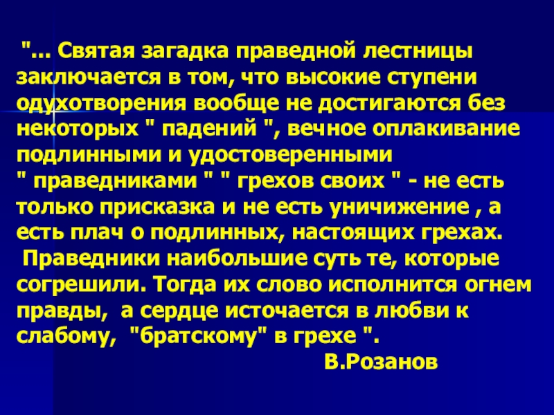 Праведники наибольшие суть те, которые согрешили. Тогда их слово исполнится огнем правды, а сердце источается в любви к слабому, "братскому" в грехе ".