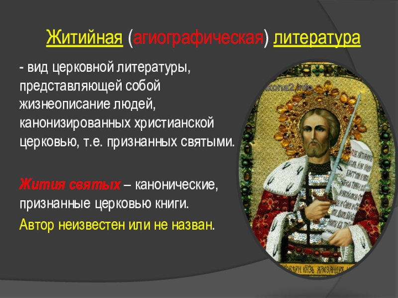 - вид церковной литературы, представляющей собой жизнеописание людей, канонизированных