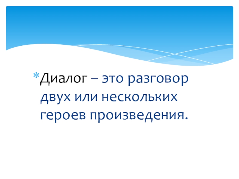 Слайд 6Диалог – это разговор двух или нескольких героев произведения.